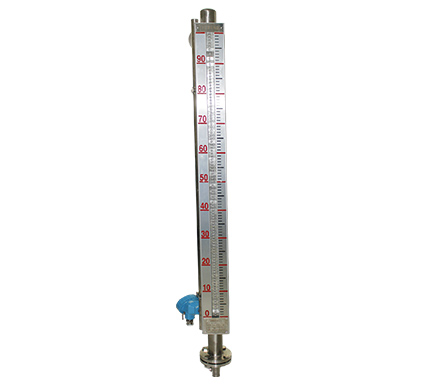 3、液位計(jì)安裝完(wán)畢後,需要用磁鋼進行校正對翻柱導引一次使零位以(yǐ)下顯示紅色,零位以(yǐ)上顯示白色。